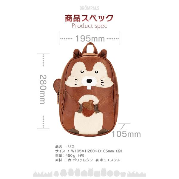 [DROMPALS リス dp004 ] アニマル リュック バッグ リュックサック 動物 キッズ 子供 北欧 かわいい デザイン 女の子 男の子 幼児 入園 通園