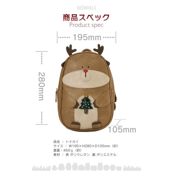 [DROMPALS トナカイ dp026 ] アニマル リュック バッグ リュックサック 動物 キッズ 子供 北欧 かわいい デザイン 女の子 男の子 幼児 入園 通園
