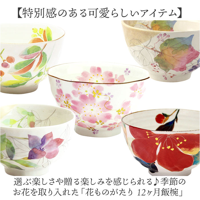 お茶碗 茶碗 花ものがたり かわいい 通販 日本製 茶わん 飯椀 ご飯茶碗 ごはん茶碗 花柄 花 はな 食器 可愛らしい 可愛い 花ことば 12ヶ月 内祝い