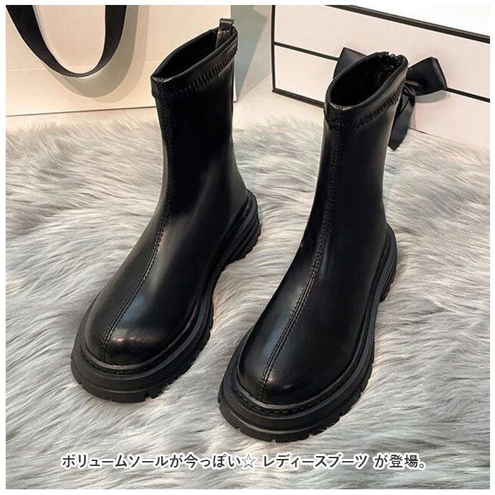 ブーツ レディース ショート 通販 靴 くつ クツ 厚底 タンクソール シューズ ラウンドトゥ 合皮 歩きやすい 滑りにくい 柔らかい ファスナー シンプル 通勤
