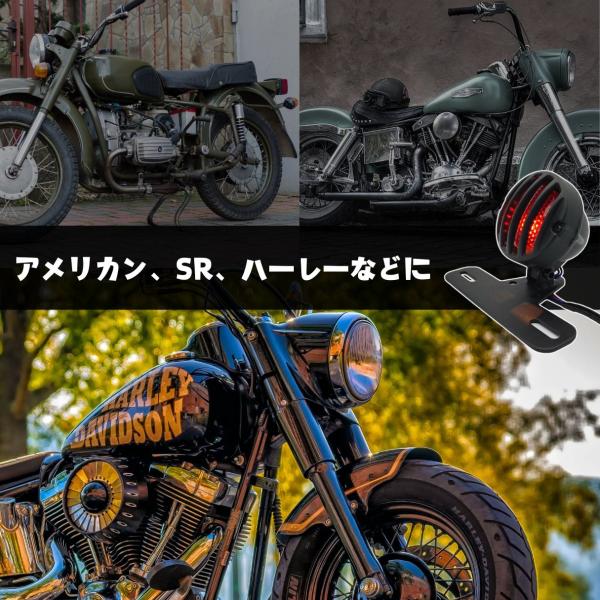 このテールランプは、ハーレーやSRなどのバイクに最適な汎用性を備え、カスタムスタイルをさらに引き立てます。