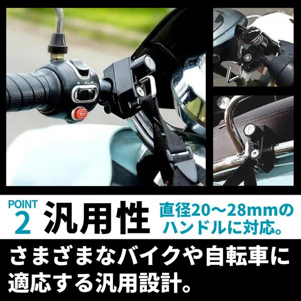 バイク・自転車だけでなく、アウトドアや工具の固定にも便利なアイテム。