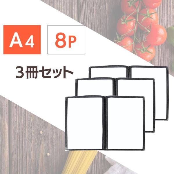 お品書き メニュー表 メニューカバー A4 縦長 8面 4ページ 3冊セット カフェ レストラン 飲食店