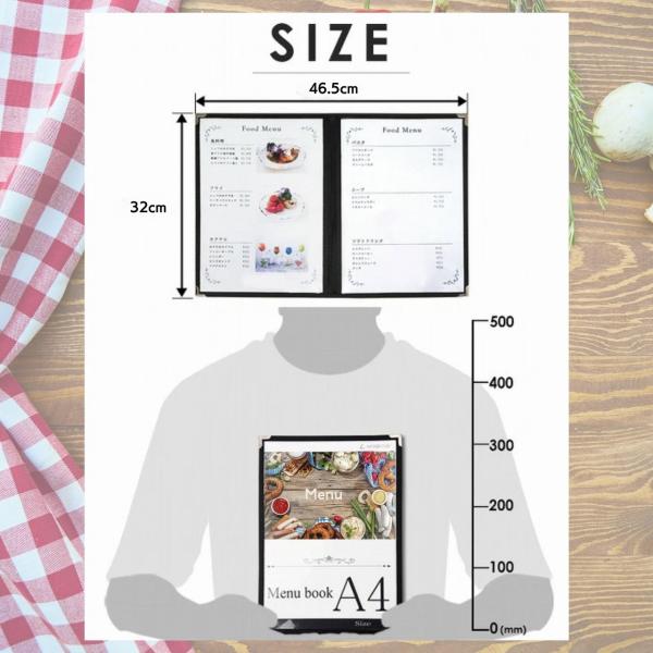 透明なクリアファイル付きでメニューを汚れや水から保護し、常に清潔な状態をキープできます。