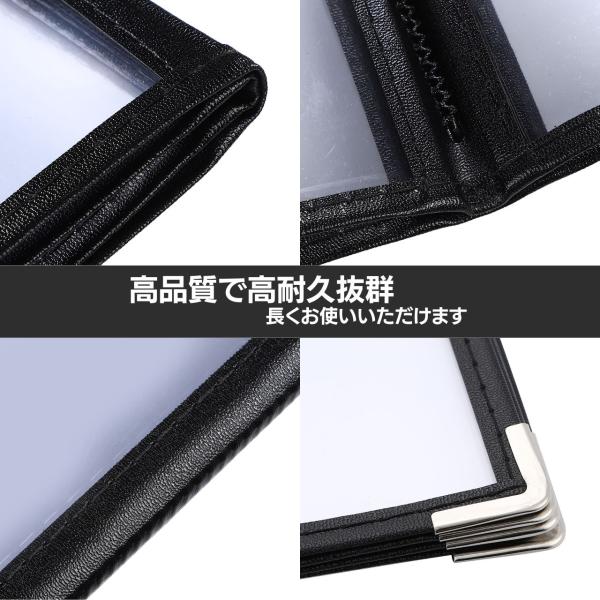 衛生的なクリアファイル付き:メニューを汚れや水から保護し、簡単に拭き取り可能。