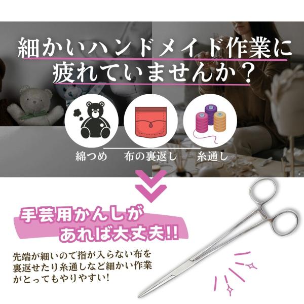 手芸用鉗子 手芸 かんし 鉗子 直/曲 2本セット 手芸用品 パーツクリップ タグ 裁縫上手 わた 綿 ハンドメイト