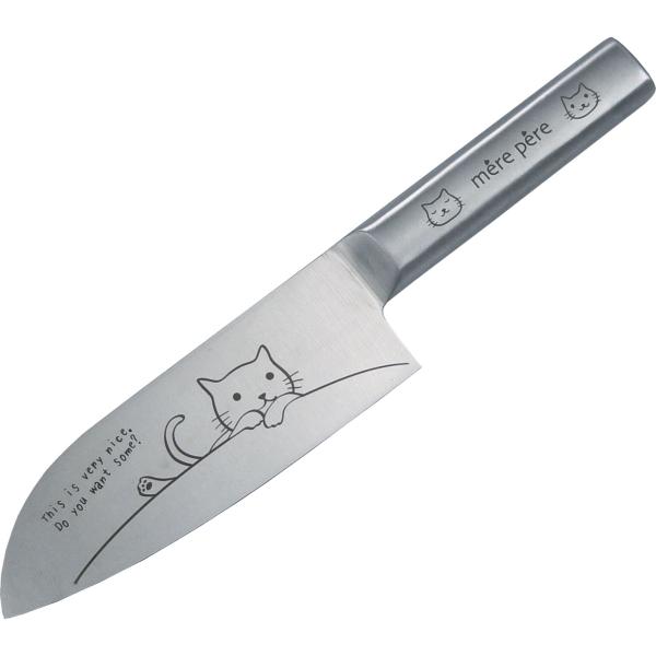 メルペール オールステンレス 小三徳包丁 ネコ (770-307) かわいい 猫柄 モリブデンステンレス鋼 刃渡り約14cm 送料込