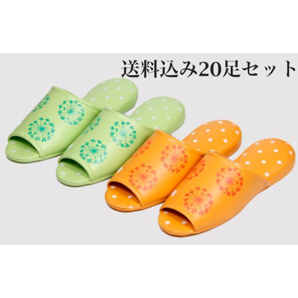 スリッパ 送料無料 20足セット ビニールスリッパ PVC すりっぱ 森 プリント 業務用 オレンジ グリーン 25.5cm 病院 民泊用 歯科 おしゃれ