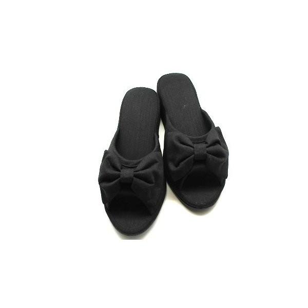 スリッパ エレガントで可愛い リボン ヒールスリッパ 黒 ルームシューズ ヒール