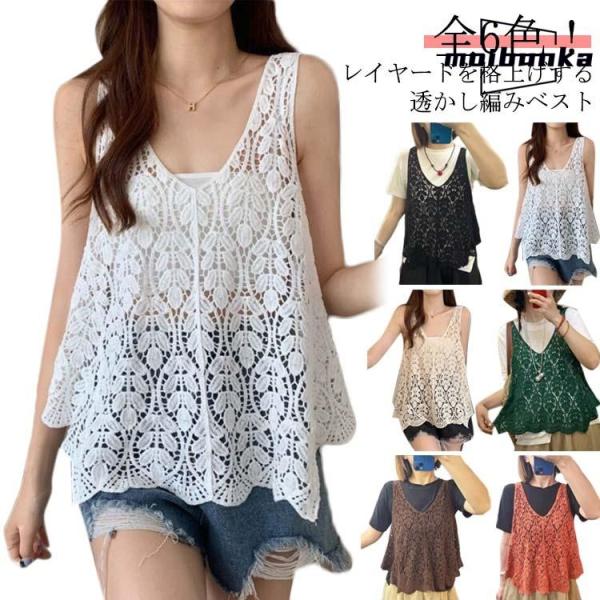 プルオーバー ノースリーブ クロシェ編み 夏 ベスト トップス 春 無地 レディース 春 夏 透かし編み カジュアル ベスト サマー プルオーバー 重