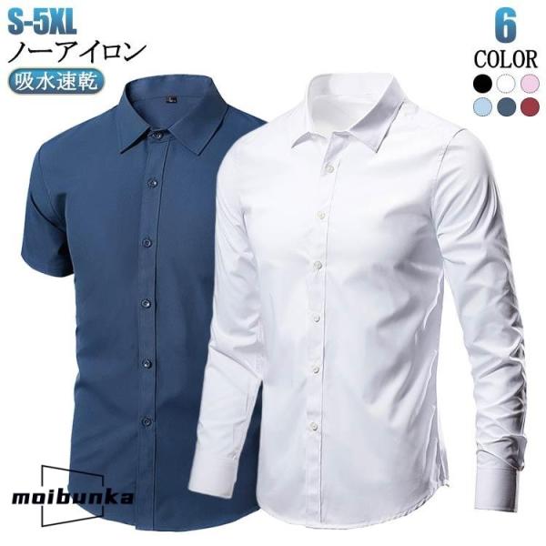 ワイシャツ カラーシャツ 長袖 半袖 メンズ 黒 ノーアイロン 紺 スリム Yシャツ ドレスシャツ カッターシャツ ビジネスシャツ 大きいサイズ 黒シ