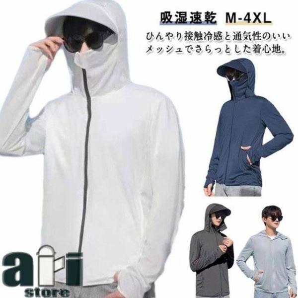 ワークマン メンズ 長袖 ラッシュガード 通気性 UVパーカー 吸湿速乾 春 UVカットパーカー サンバイザー 夏 アウター 長袖 ジップアップパーカ