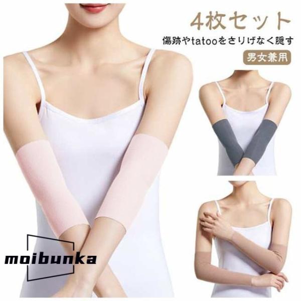 ストレッチ アームカバー タトゥー隠し 肌色 4枚セット 隠すサポーター 通気性 薄手 二の腕サポーター 二の腕カバー tatooかくし 肌色サポータ