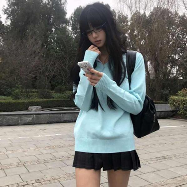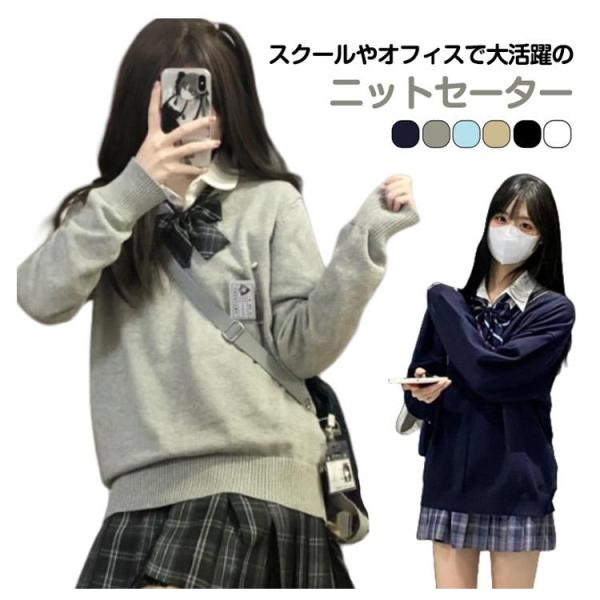 スクール レディース スクールセーター 学生 通学 ニット ニット 高校 制服 シンプル 長袖 Vネック 入学 セーター 中学生 スクール 女子高生