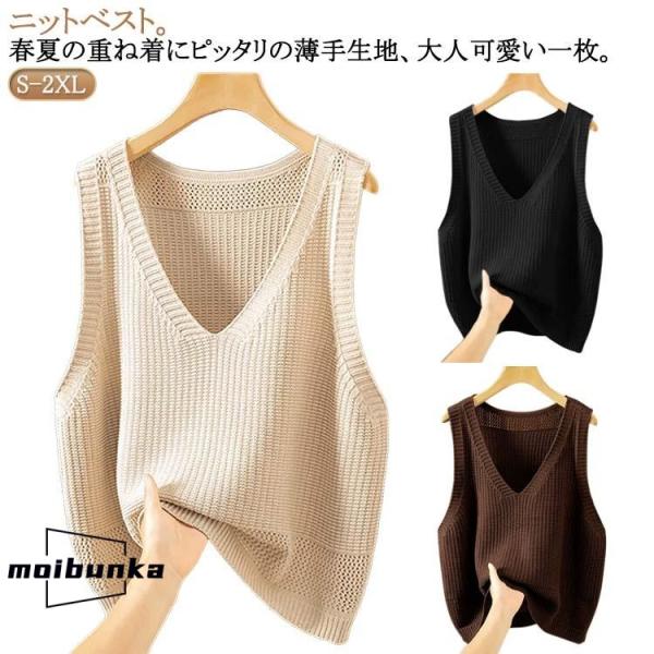 ニット ベスト レディース 春夏 ジレ 透かし編み プルオーバー 大きいサイズ ゆったり Vネック ニットベスト サマーニット おしゃれ チョッキ 重