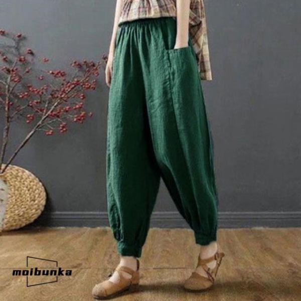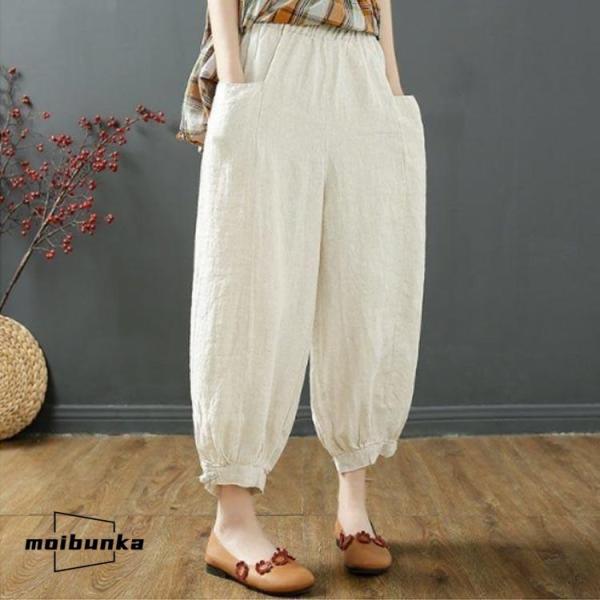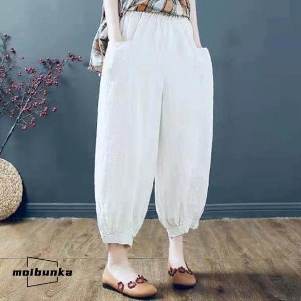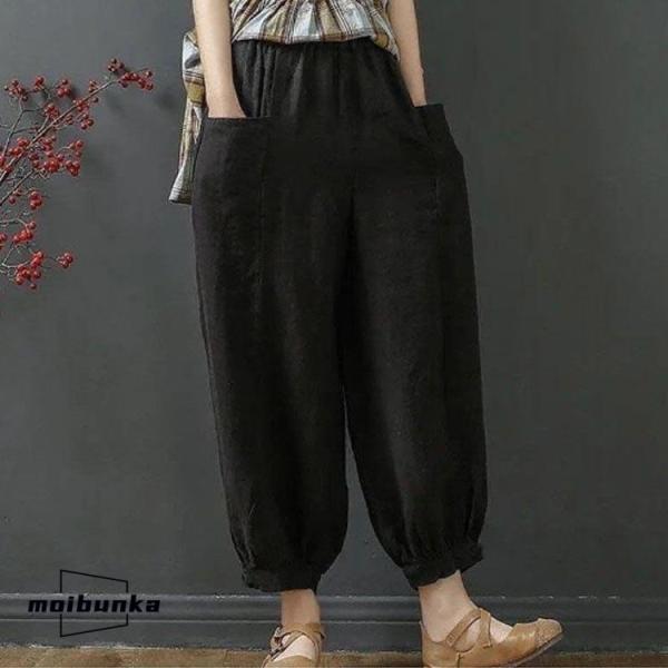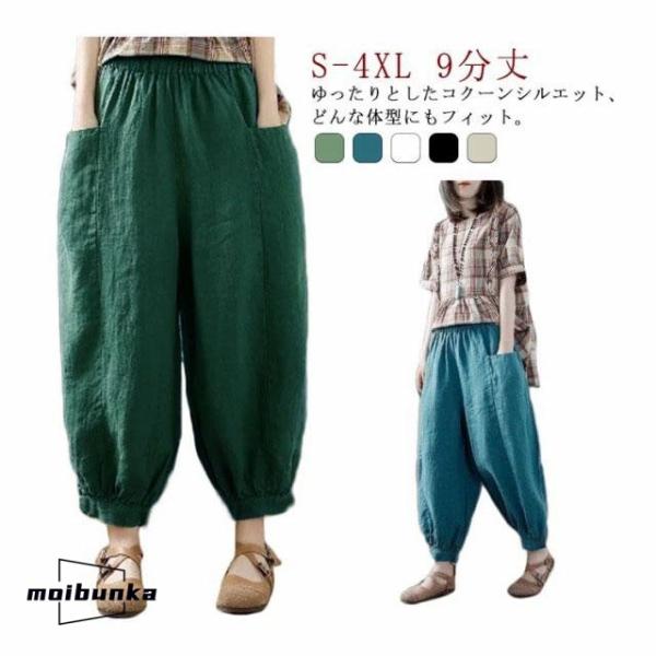 サルエルパンツ レディース 夏 ズボン 9分丈 ドッキング 綿麻風 テーパードパンツ ウエストゴム ハイウエスト ポケット ゆったり 大きいサイズ ボ