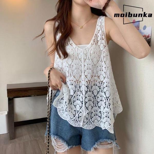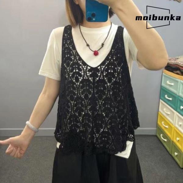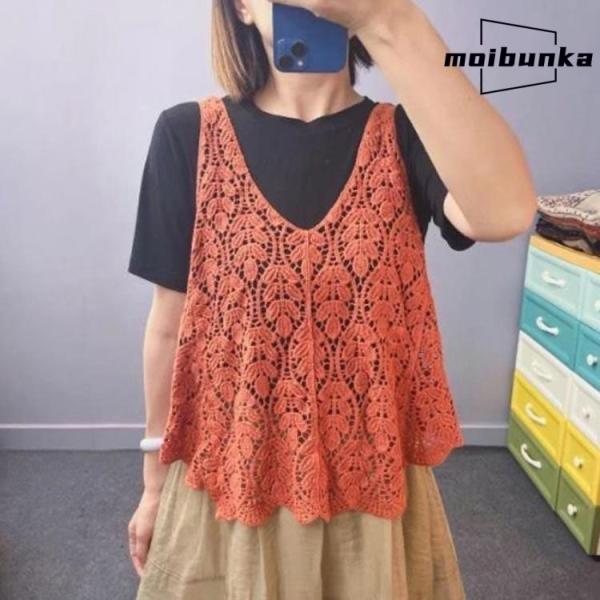 プルオーバー ノースリーブ クロシェ編み 夏 ベスト トップス 春