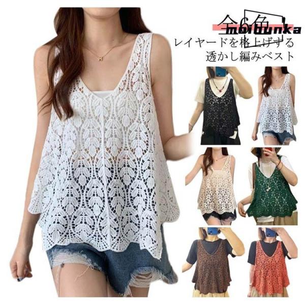 プルオーバー ノースリーブ クロシェ編み 夏 ベスト トップス 春 無地 レディース 春 夏 透かし編み カジュアル ベスト サマー プルオーバー 重