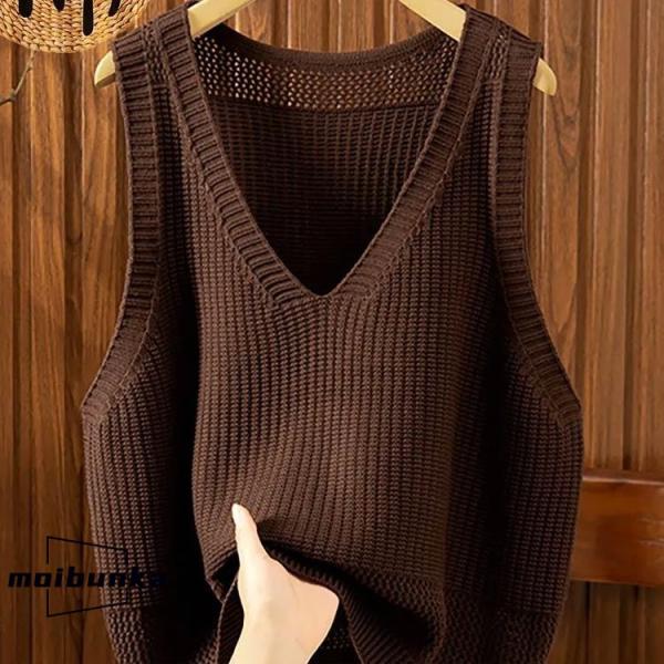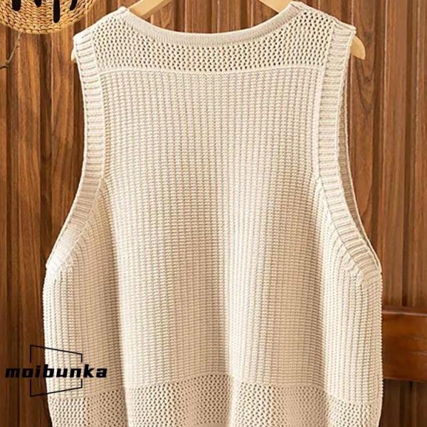 ニット ベスト レディース 春夏 ジレ 透かし編み プルオーバー 大きいサイズ ゆったり Vネック ニットベスト サマーニット おしゃれ チョッキ 重