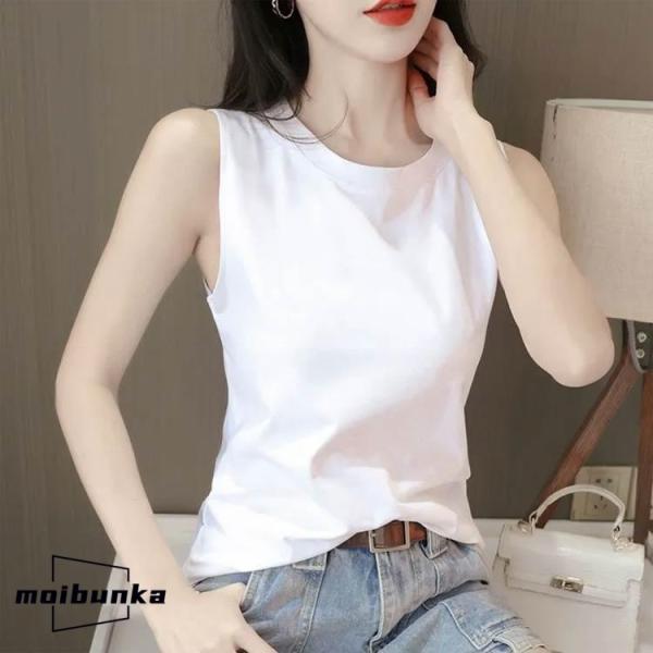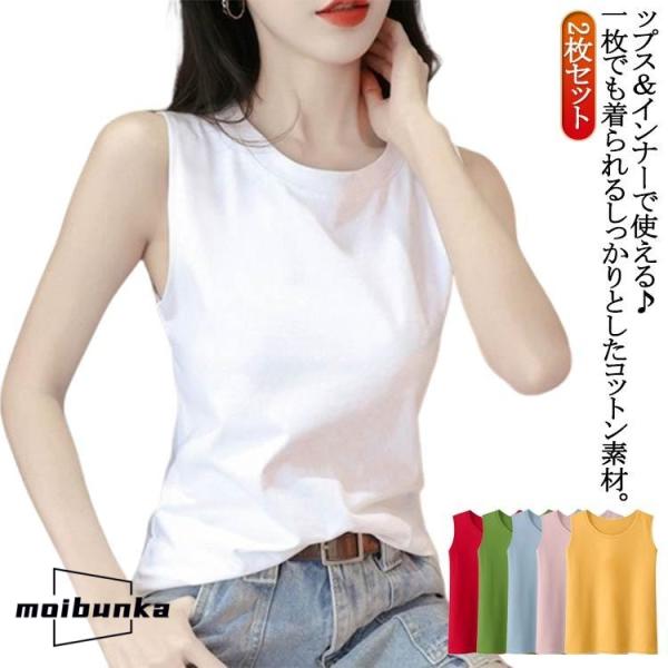 2枚セット!綿 袖なし コットン レディース インナー Tシャツ ブラ紐隠しインナー トップス ノースリーブ ブラ紐隠し カットソー 着回し クルー