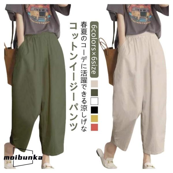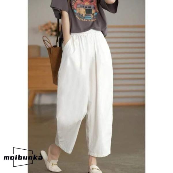 クロップドパンツ サルエルパンツ レディース パンツ 9分丈 ボ 綿 コットン ゆったり ウエストゴム イージーパンツ 大きいサイズ 無地 夏服