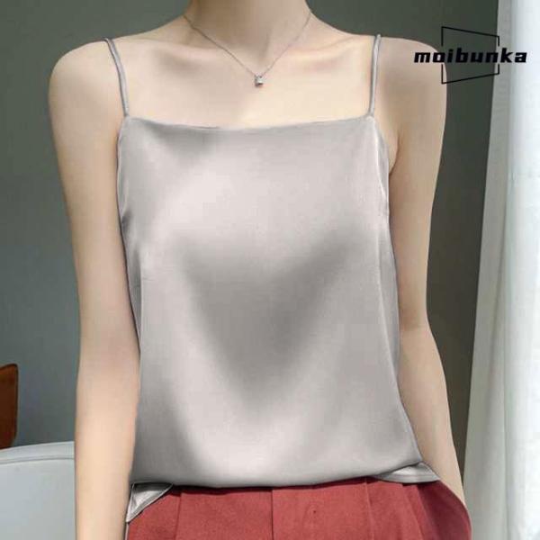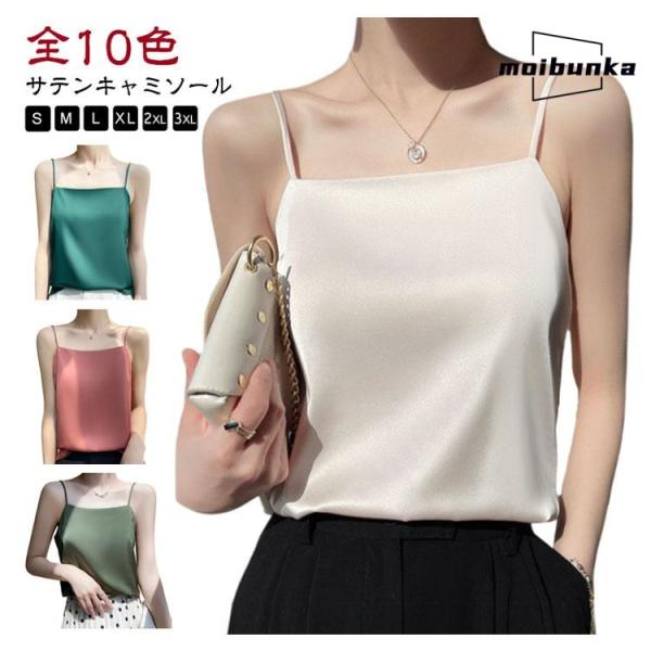 春夏 トップス 楽ちん レディース サテン ノースリーブ インナー サテンキャミソール ナローストラップ 大きいサイズ タンクキャミ シルク おしゃれ