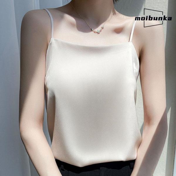 春夏 トップス 楽ちん レディース サテン ノースリーブ インナー