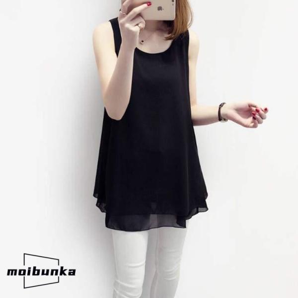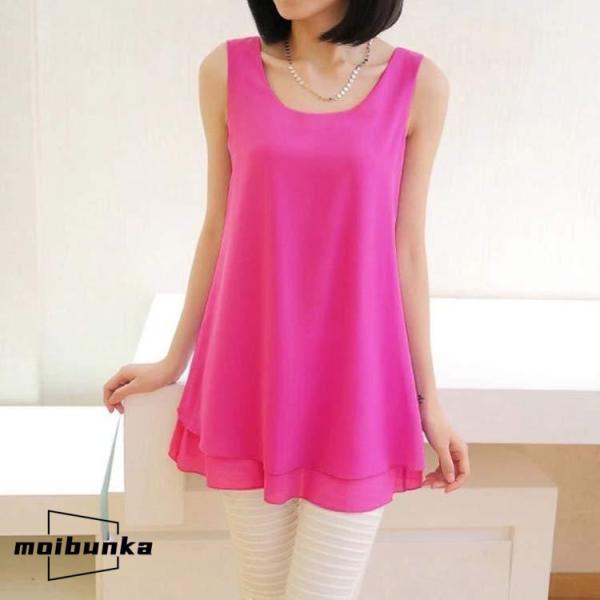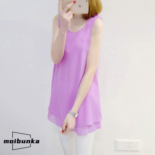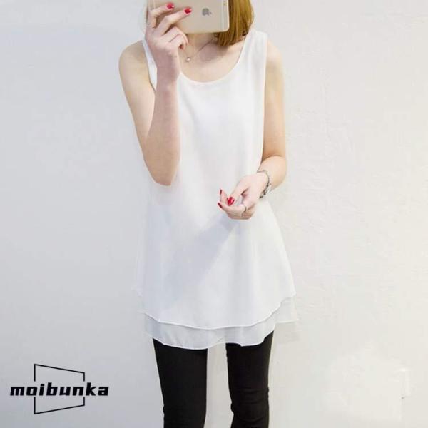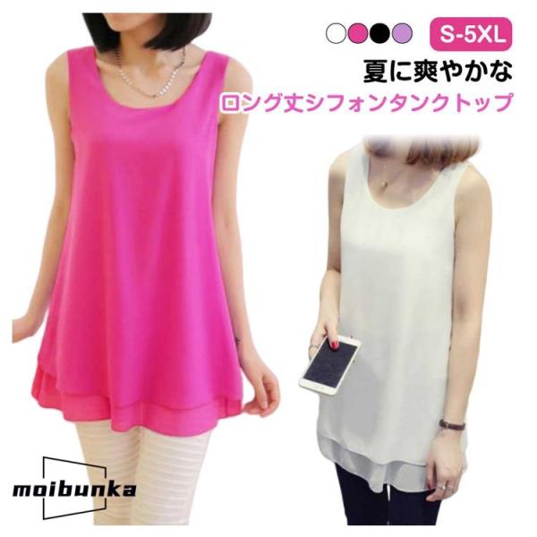 ゆったり シフォン タンクトップ レディース ブラウス ロング丈 シフォン トップス ノースリーブ チュニック丈 インナー レイヤード 重ね着 春 夏