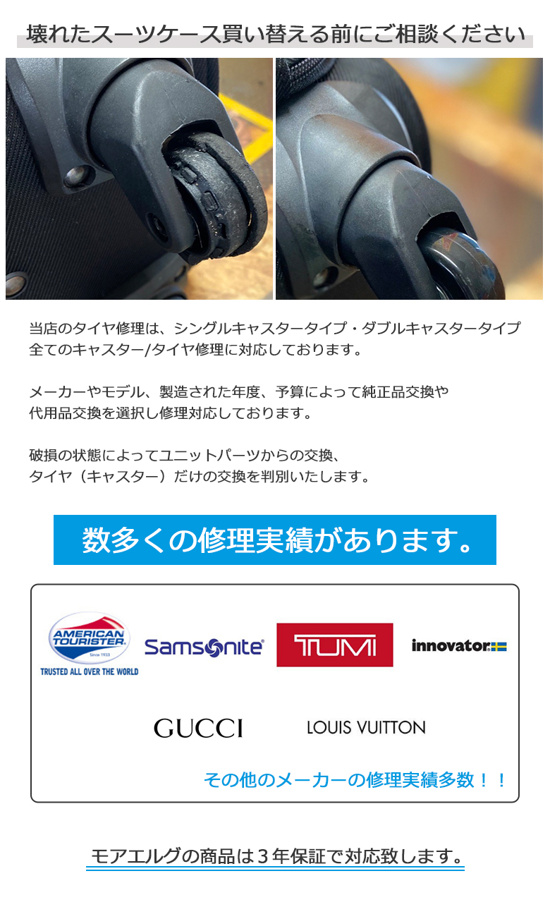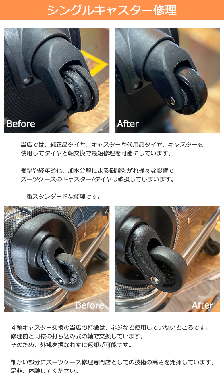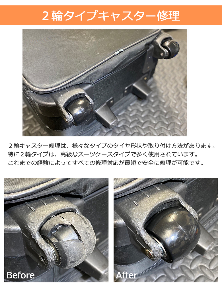 スーツケースキャスター修理 スーツケース修理 キャリーケース修理 タイヤ修理 キャスター交換