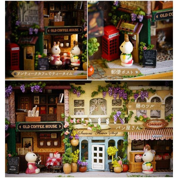 日本語説明書 ドールハウス ミニチュア 手作りキット 小物入れで暮らすうさぎシリーズ 初心者 兎 ギフト 自由研究|LEDライト+スタンド(アンティークカフェ)