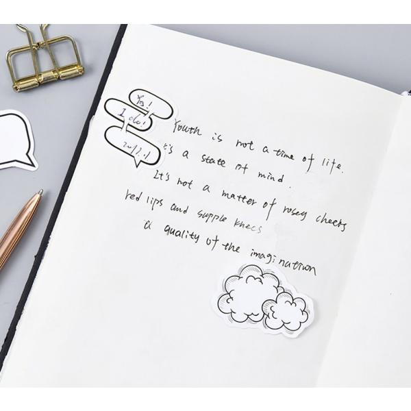 どこにでもぺたぺた貼れるので便利なふきだしのシールです。シールの裏ははがしやすくデザインされていて、使いやすいのも特長です。