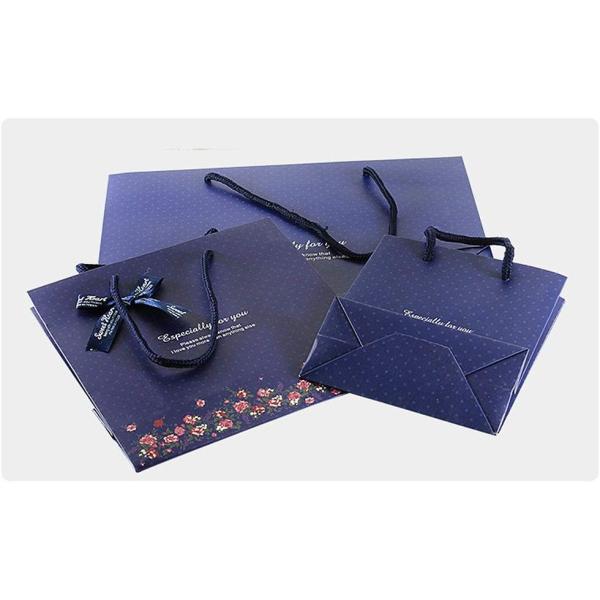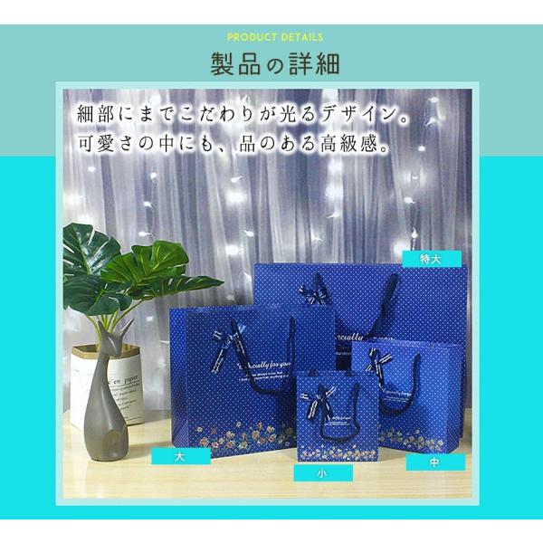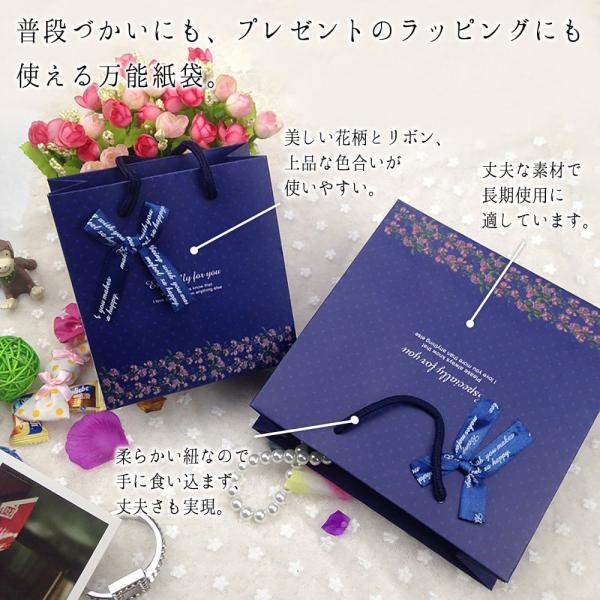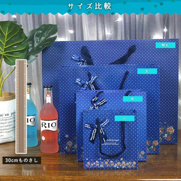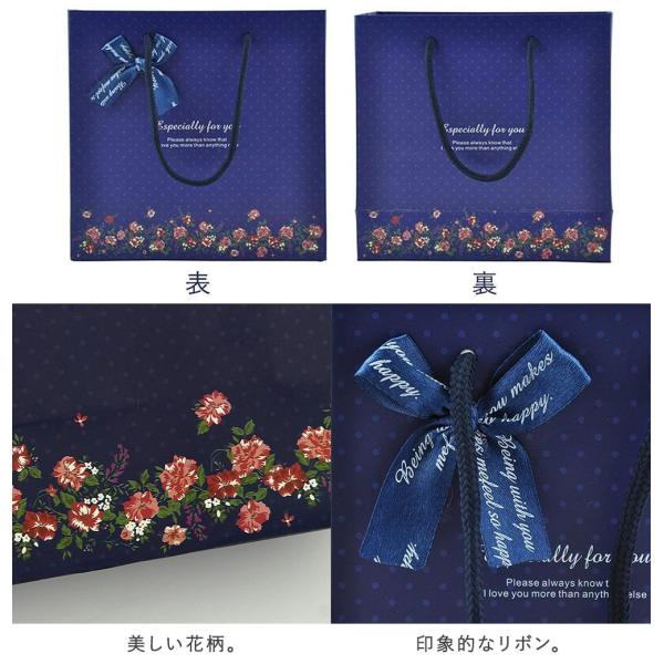 ラッピングギフトバッグ 手提げ袋 紙袋 | 青 藍色 花柄 フラワー | 5枚 ( 花束とリボン 45×35×15cm )