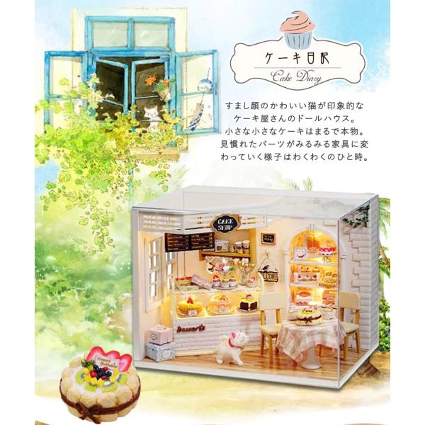 ドールハウス ミニチュア 手作りキット セットドールハウス 猫のケーキ日記 | ケーキ屋さん | LEDライト + アクリルケース