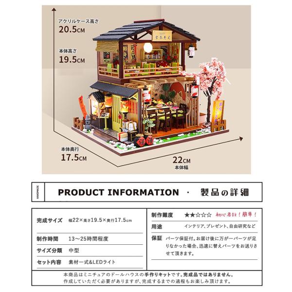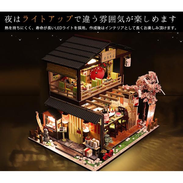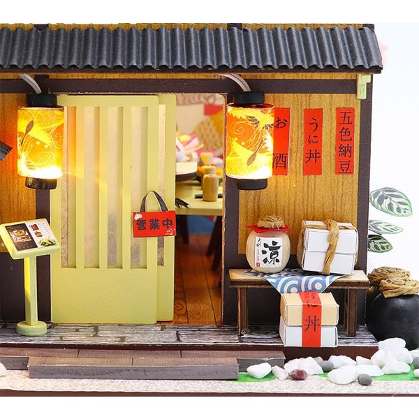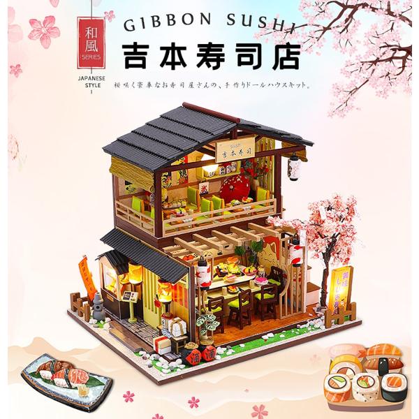 ドールハウス ミニチュア 手作りキット セット桜咲く寿司屋さん | 二階建て 和風 寿司 桜 春 | 中型 | LEDライト ( 吉本寿司 )