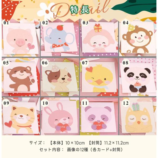 サイズ: 【本体】10×10cm 【封筒】11.2×11.2cm セット内容: 画像の12種(各カード+封筒)