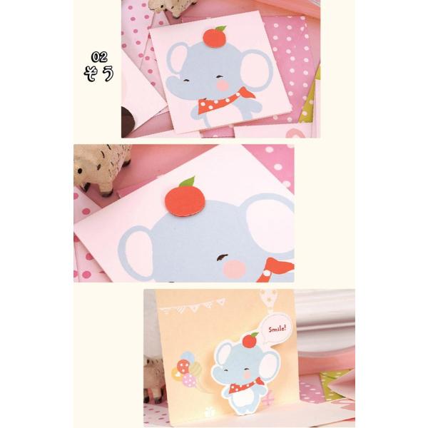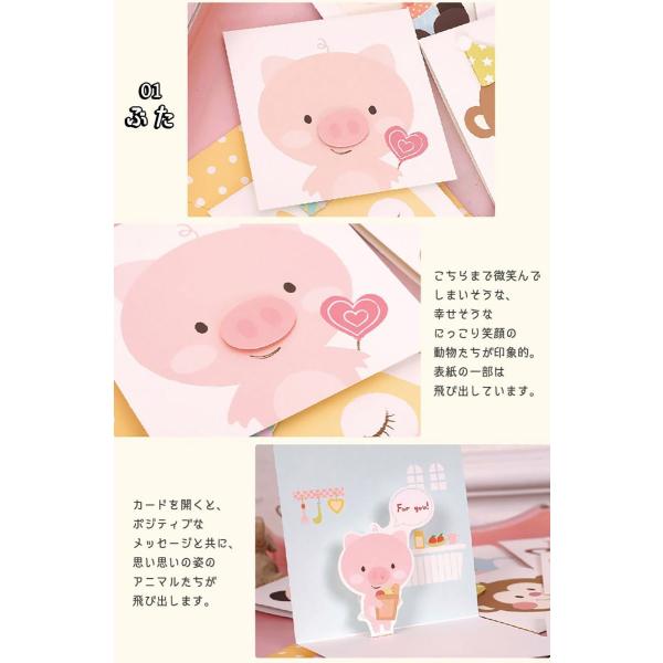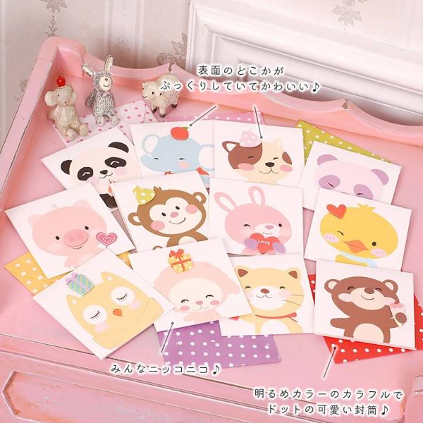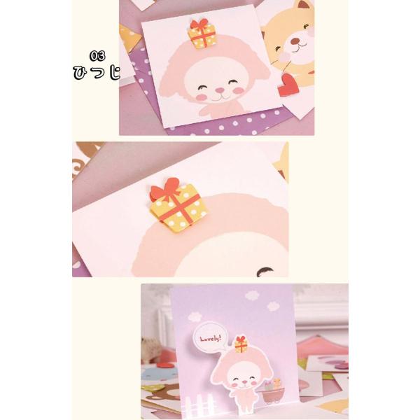 メッセージカード グリーディング にっこり 笑顔 アニマル 動物 | ミニ 小さめ 飛び出す 3D 犬 猫 | カード+封筒(水玉) 12種セット