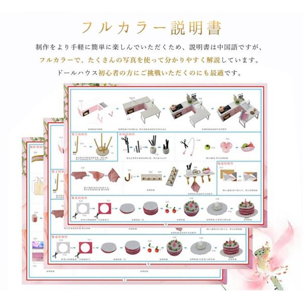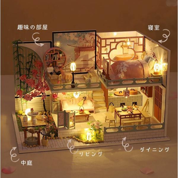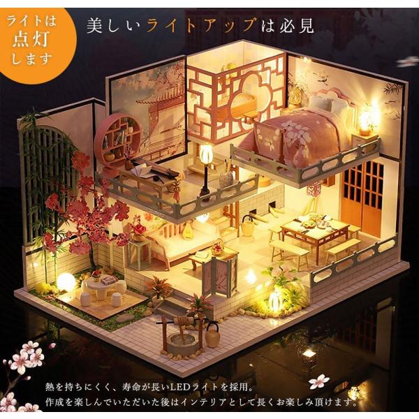 ドールハウス ミニチュア 手作りキット DIY | 二階建モデルルーム風 | 中華 中国風 桜 | 大型 1/24 |LEDライト+ケース(チーナ)
