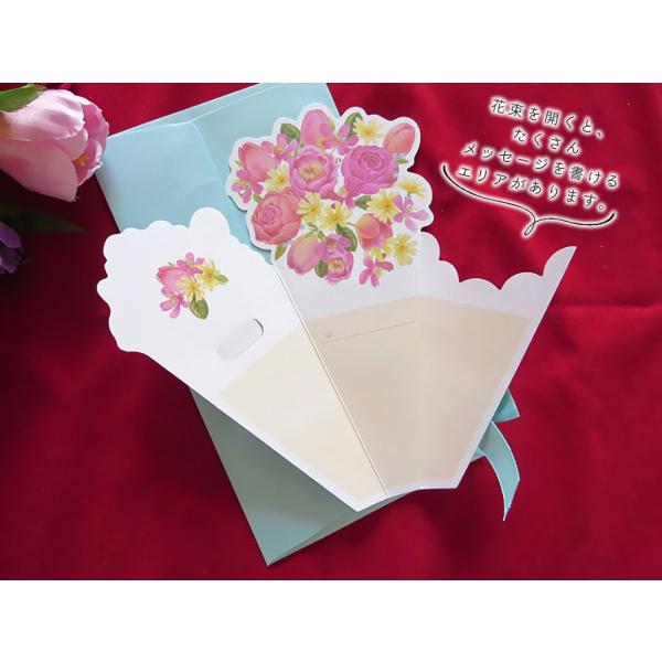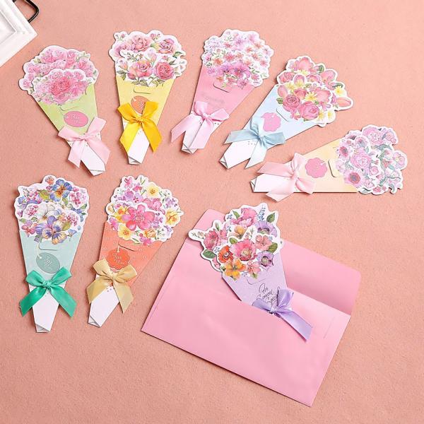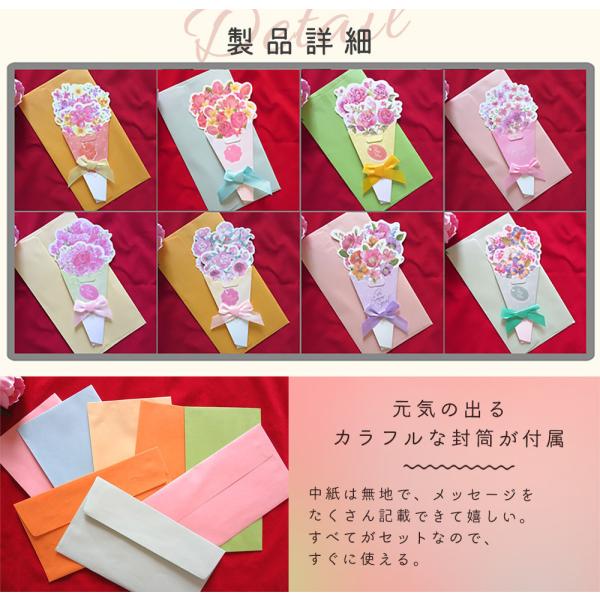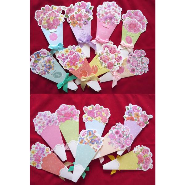 メッセージ カード花束 8種 40枚 大量 徳用 セット 花 フラワー イラスト 英字 二つ折り 飛び出す 3D ミニレター レターセット パステル グリーディ
