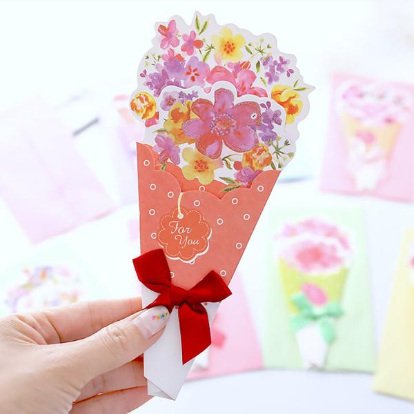鮮やかな包み紙に包まれたブーケが綺麗なギフトカード。花束の代わりに、枯れずに永遠に美しいカードはいかがでしょうか。