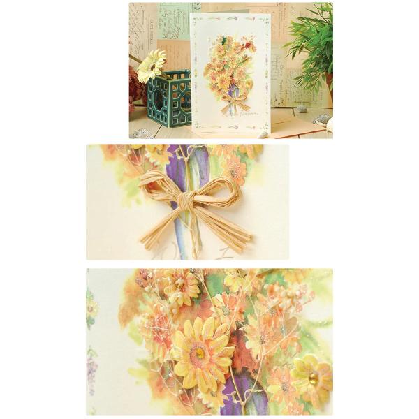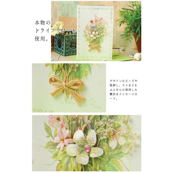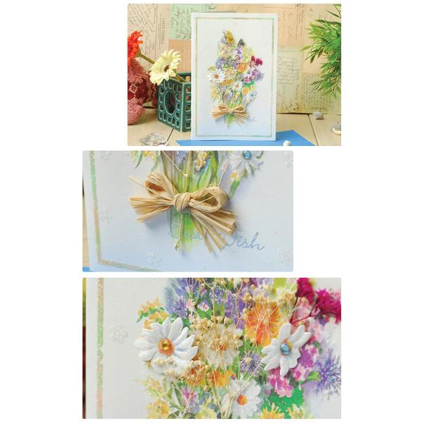 メッセージカード サンキュー ありがとう グリーディング ドライフラワー 3D リボン 箔押し ゴールド 花束 花 カード+中紙+封筒 5種セット