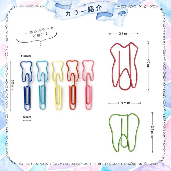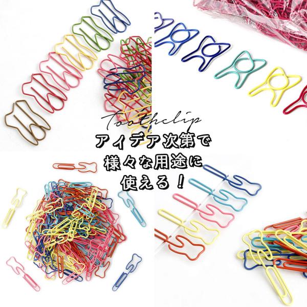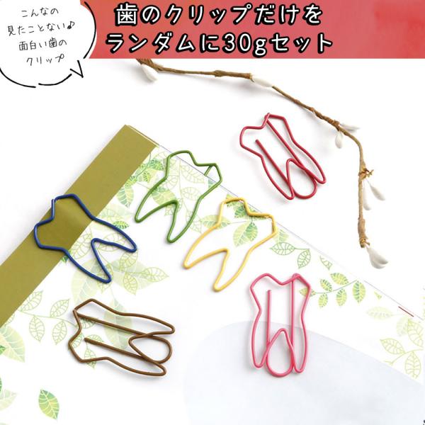 歯 クリップ30g(30 〜40個)セット 歯牙 モチーフ しおり ゼムクリップ 可愛い アソート カラフル ケース入 大容量 歯医者 歯科 キバ