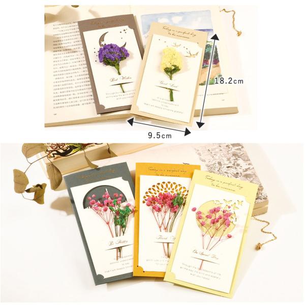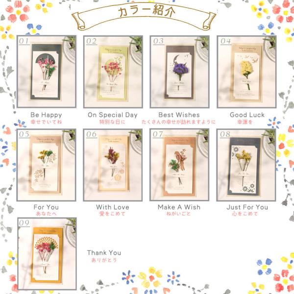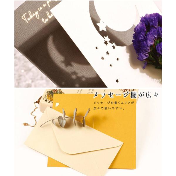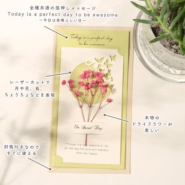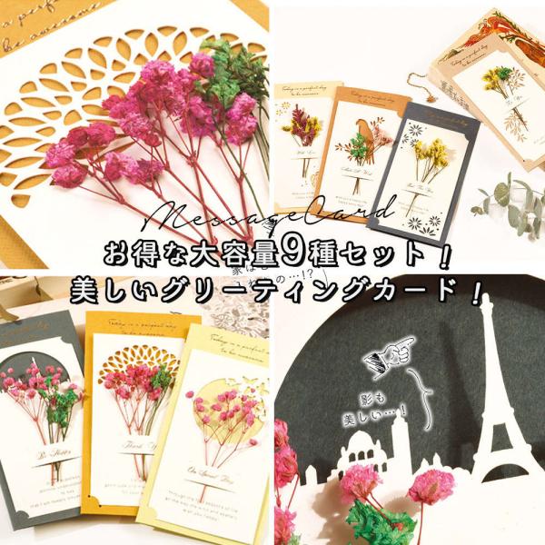 メッセージ カード ドライフラワー 花 9種セット 封筒付 シルエット 影絵 カラフル シック おしゃれ 鳥 月 星 箔押し キラキラ