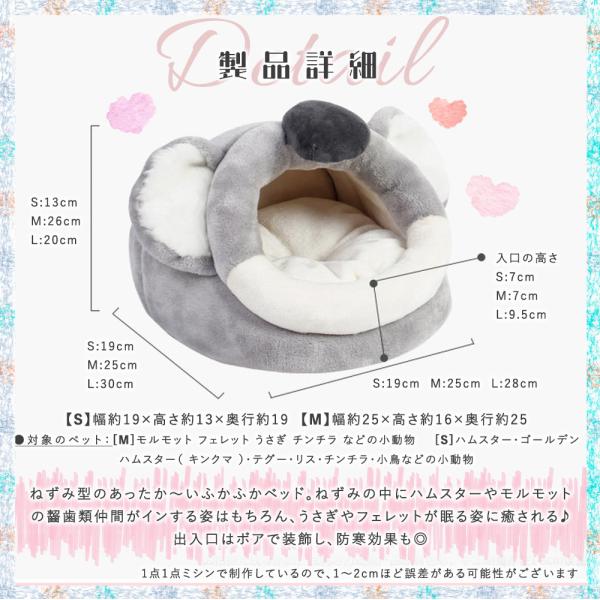 ねずみ型のあったか〜いふかふかベッド。ねずみの中にハムスターやモルモットの齧歯類仲間がインする姿はもちろん、うさぎやフェレットが眠る姿に癒される♪出入口はボアで装飾し、防寒効果も◎