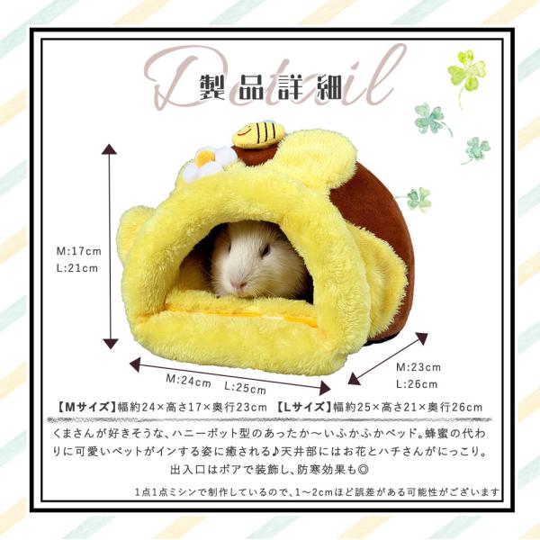くまさんが好きそうな、ハニーポット型のあったか〜いふかふかベッド。蜂蜜の代わりに可愛いペットがインする姿に癒される♪天井部にはお花とハチさんがにっこり。出入口はボアで装飾し、防寒効果も◎