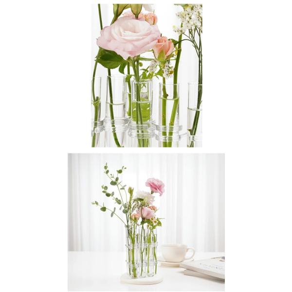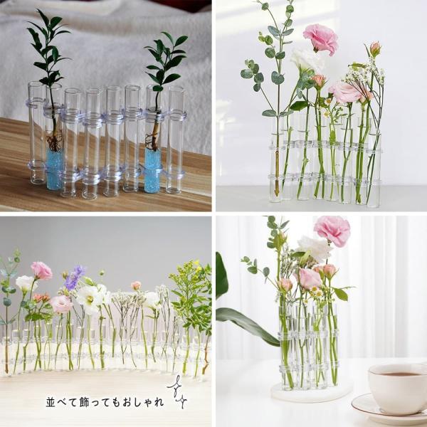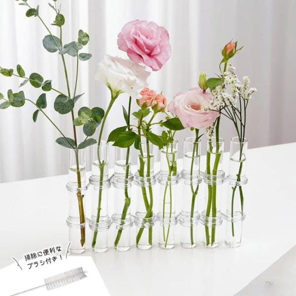 フラワーベース フラスコ 試験管 ( 直径2.5cm×高15cm ) 花瓶 リンクチューブ ベース おしゃれ 花 水耕栽培 植木鉢 ガラス 6連 ブラシ付