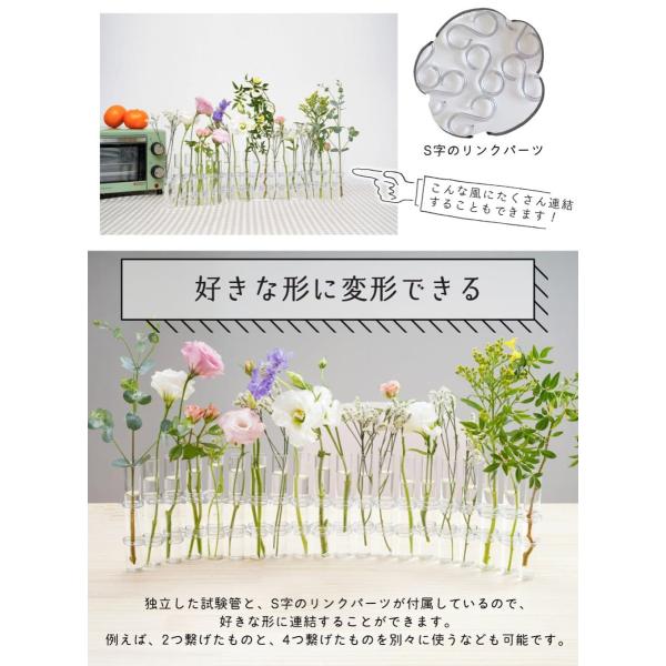 【 好きな形に変形できる 】 6つの試験管と、S字のリンクパーツが付属しているので、好きな形に連結することができます。例えば、2つ繋げたものと、4つ繋げたものを別々に使うなども可能です♪