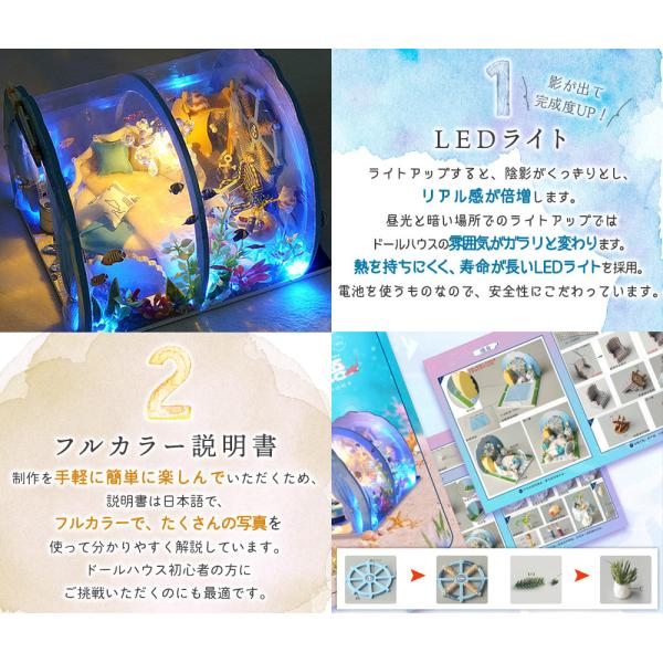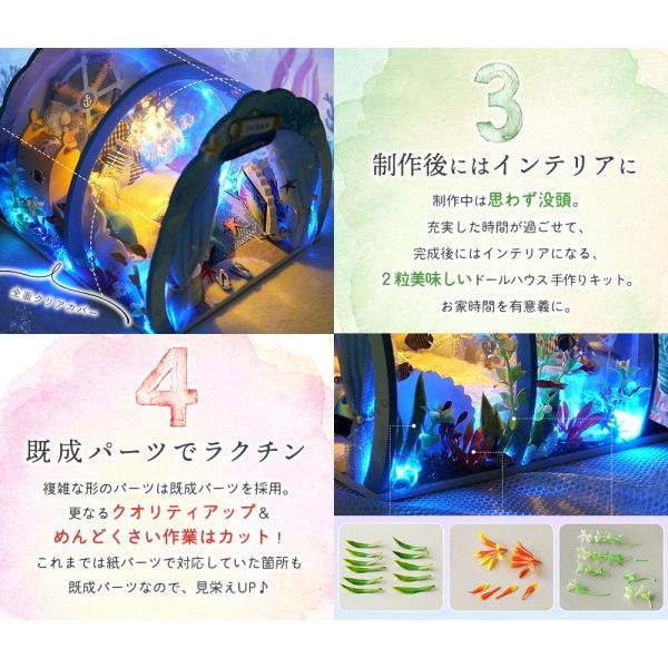 1/24 ドールハウス ミニチュア 手作りキット セット 日本語 説明書 360度 水族館のような 水の中のお家 幻想的 オーシャン 海 LEDライト