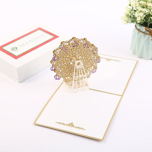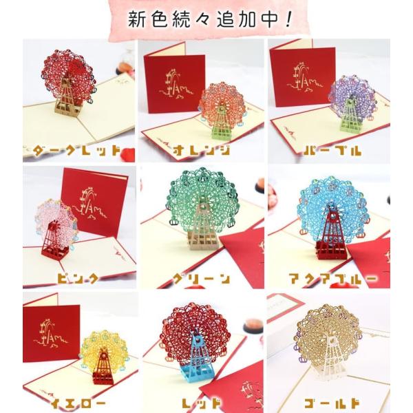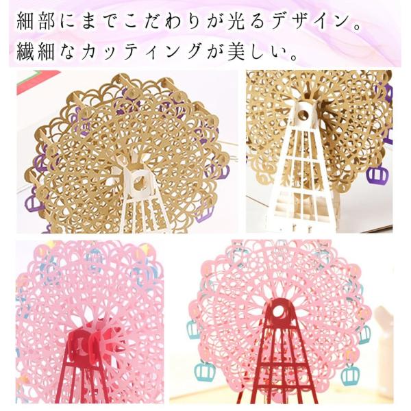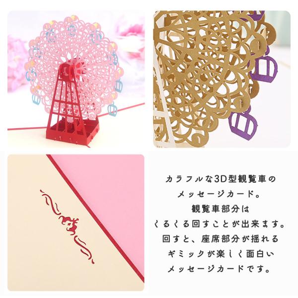 メッセージ カードバースデー グリーディング 切り絵 立体 3D 飛び出す 観覧車 レッド 赤 / 封筒付 / ゴールド(ゴールド)