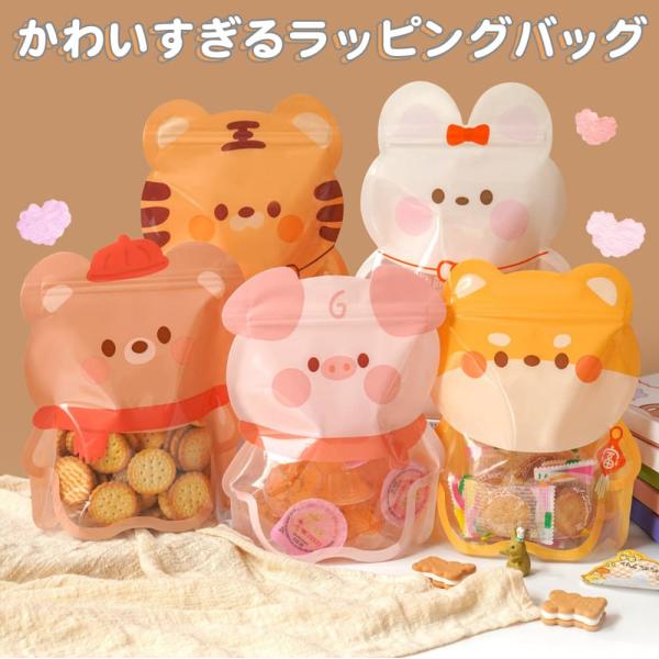 ラッピングアニマル かわいい ラッピング パウチ くま 10枚セット 自立 チャック ジッパー 小分け袋 繰り返し使える 18×22×7cm おしゃれ エコ 丈夫
