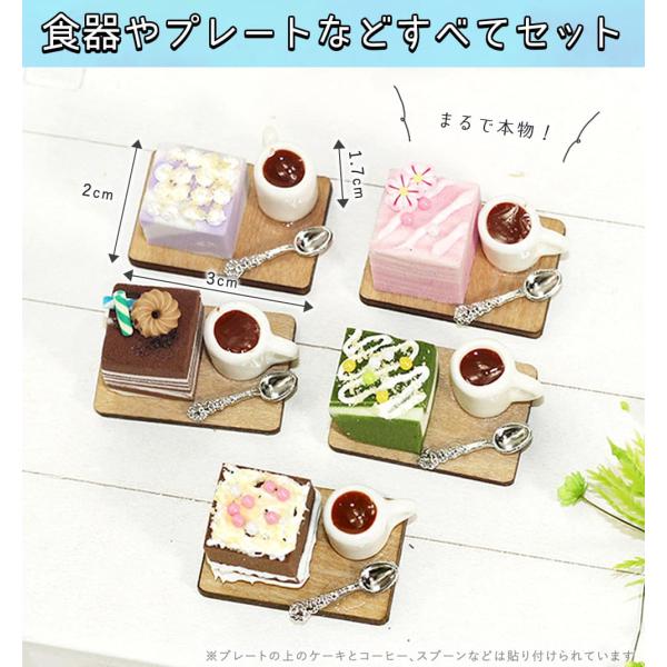 【サイズ】 3×2×1.7cm 【セット内容】 1セット ※プレートの上のケーキとコーヒー、スプーンなどは貼り付けられています